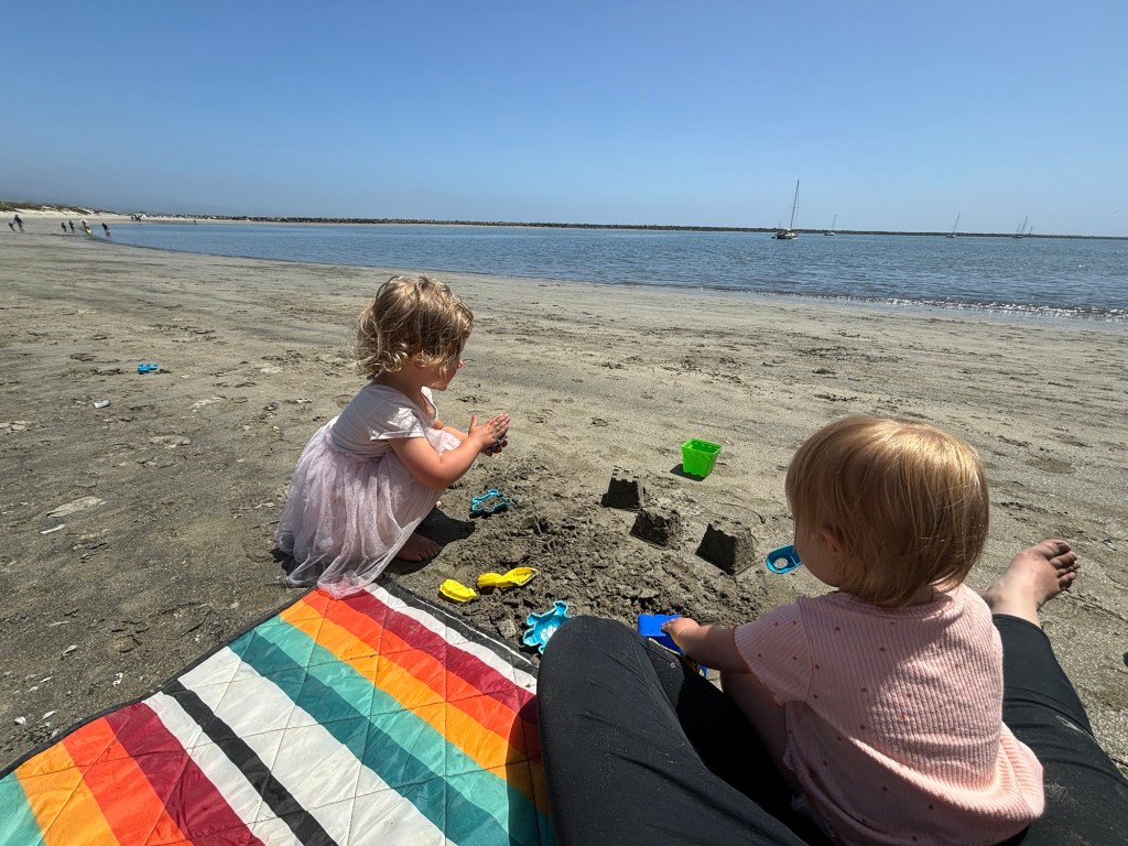 Our days were filled with firsts and plenty of sand: building sandcastles, getting our fingernails, toenails, ears, hair, you name it, covered in sand, and close encounters with the barking residents of Half Moon Bay… the sea lions. Tilly and Alice had an exciting time on their paddle-board  adventures, even getting followed by some curious seals! Tilly’s strider bike skills reached new heights at the local pump track (a pump track is a purpose-built track for cycling. It has a circuit of rollers, banked turns and features), and she also enjoyed her first haircut experience and lending a hand to local fishermen as they pulled clams from the deep sand.