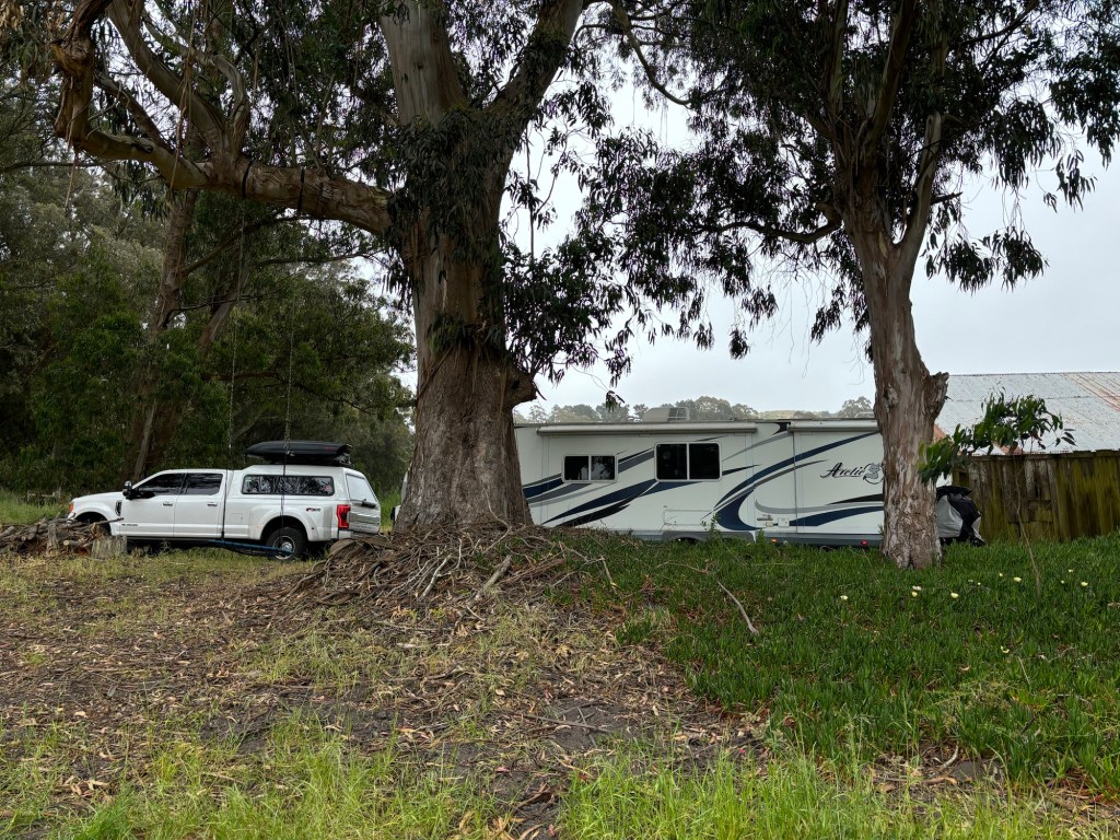 Worm Farm, nestled under fragrant eucalyptus trees, with a beautiful main house and expansive field offered plenty of space for our trailer. Gracie had a great time working on her fitness levels chasing animals and running wild, clocking in about three miles on her more energetic (some may say naughty) days. Bruce and Sandy, our gracious hosts, welcomed us with open arms and warm hearts. Their generosity allowed us to spend valuable time on the coast, a luxury we might not have afforded otherwise. Their extensive RV traveling experience was both useful and inspiring.