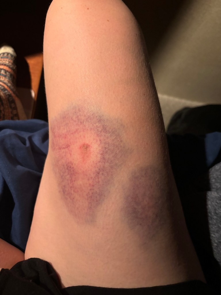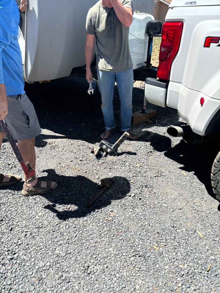 What’s our adventures without a few more mishaps. Alice managed to acquire some spectacular bruises after a fall on the ‘washboard’ bumpy ride through a forest path on her way to town for coffee. Our tow hitch took a hit when the trailer brakes were triggered unexpectedly, although demonstrating that these brakes do in-fact work.