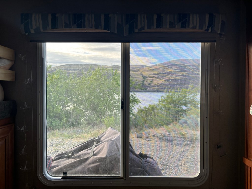 We found ourselves in a huge car park in the mountains, a winter sno-park that in the summer becomes a haven for travelers like us, offering free overnight stays. We took an evening walk along the Nordic ski routes, bundled up in extra blankets and layers, and braced ourselves for the near-freezing mountain temperatures. And let’s not forget the hundreds of thousands of caterpillar nests we encountered—bleurgh!