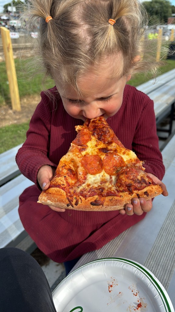 But the week’s highlight? The Brown County Free Fair! This small-town fair was packed with fun, from animals to deep-fried Oreos, donuts, and ice cream galore. Tilly experienced her first fairground rides and couldn’t get enough—sliding down the longest slides, spinning on a pirate ship, and all fueled by sweet treats. One evening, we stayed up late to experience a true American classic: a DEMOLITION DERBY. It was wild! The mud-covered arena was smaller than expected, especially for the number of vehicles that were coming in and out, the reoccurrence of the Water Tanker to keep it muddy was a moment that could not be missed. The cars, including some surprisingly durable minivans, kept crashing into each other until they were sleds with half an engine, but still managed to keep going. The Trucks were loud and took a while to get fully beaten down, however Tilly kept asking for more and little Maggie, once she got her earplugs in place enjoyed a relaxing evening on her parents laps watching cars.