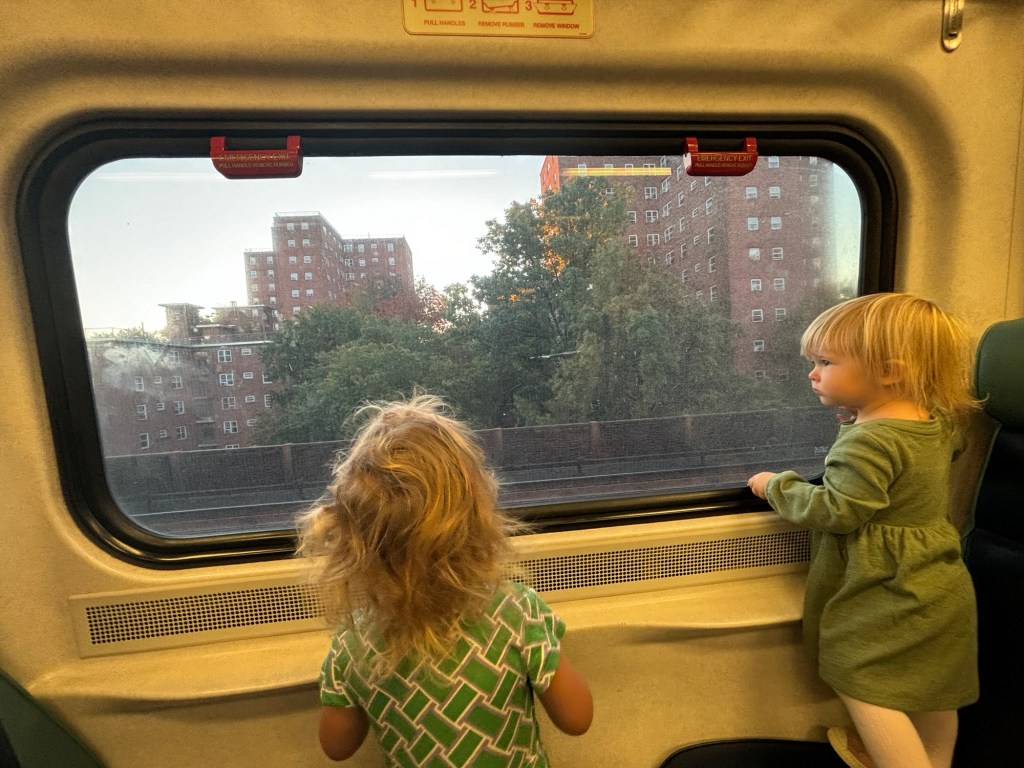 Once we finally arrived at our next spot, we took a deep breath and geared up for our big trip into the city—“The Big City” as we’d described it to Tilly, just like in Paw Patrol. Luckily, we were close enough to catch a train directly into the city, which the girls loved! Tilly has now decided she’s a train conductor and loves “checking tickets” and announcing when a train is arriving in her imaginary world.