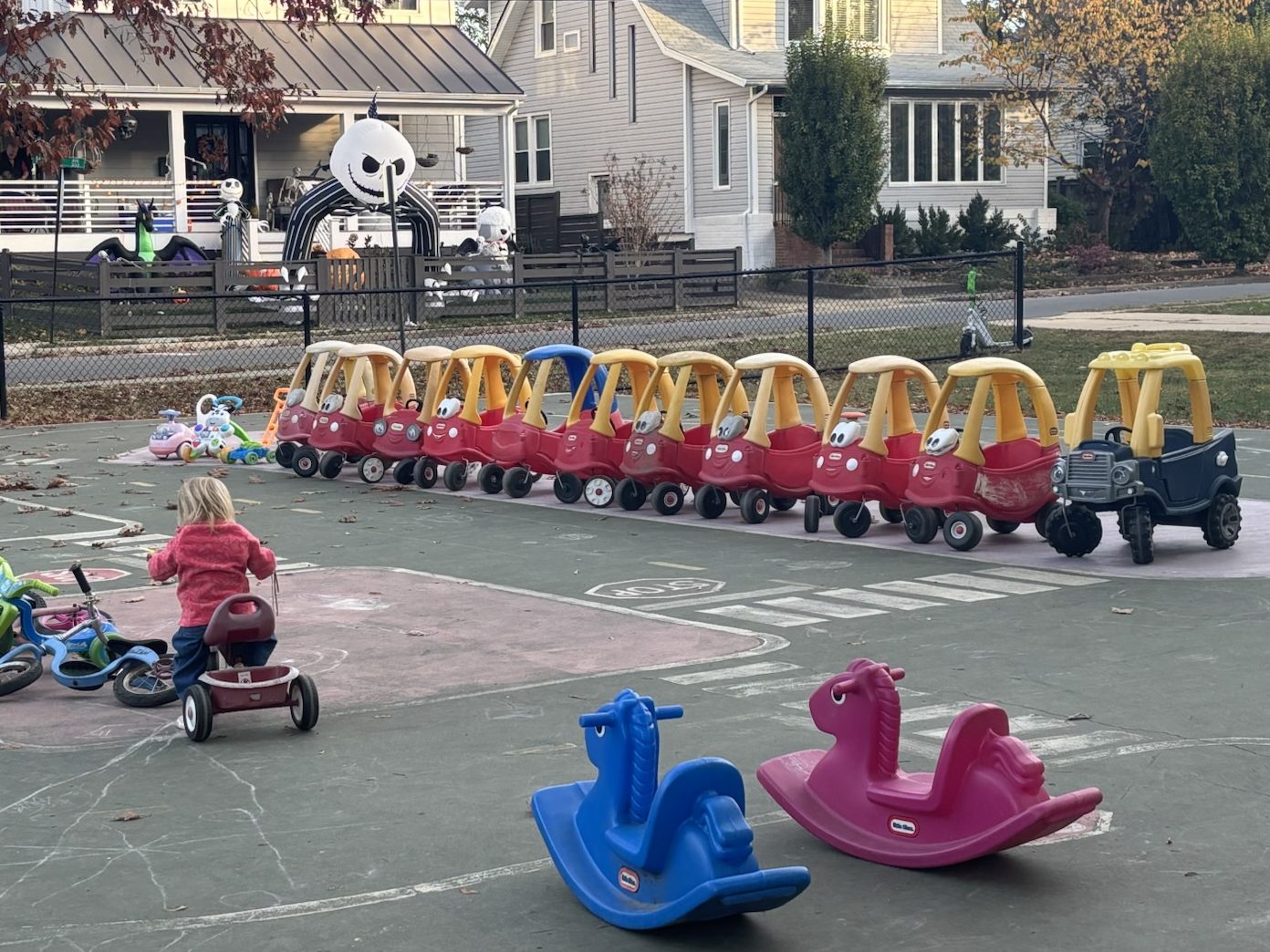 Two local child-friendly spots quickly became our daily haunts. First, a cozy coffee shop with a giant sandpit filled with toys, and second, a local park. The park offered all the usual amenities but also had an unexpected bonus: outgrown outdoor toys left behind for everyone to enjoy. Imagine scooters, tricycles, and plenty of those yellow and red cars—Cozy Coupes, I think they’re called. The result? Absolute chaos (and pure giggles all around).