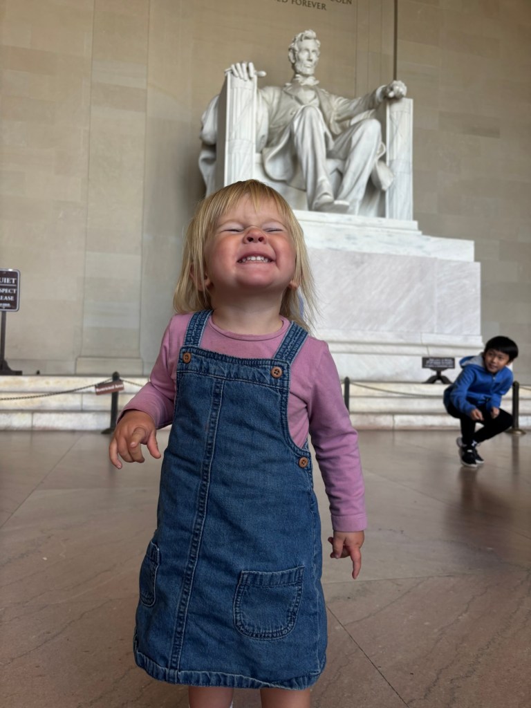 This past month (November), we traded our six-wheeled home for a stationary life, settling in with some of our favorite people in Washington, DC. It was a refreshing change to stay in one place for a while, getting to know the area and enjoying quality time with family. The girls absolutely loved spending time with their aunt and uncle, singing daily renditions of Wheels on the Bus and giggling in a “big” bathtub. (We do have a small bath in the trailer that fits both girls)