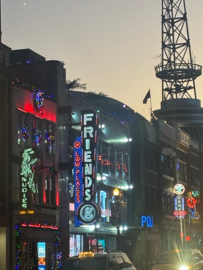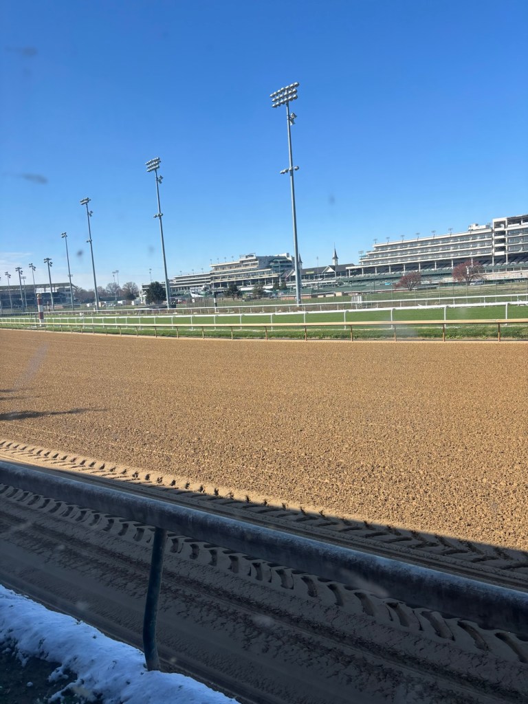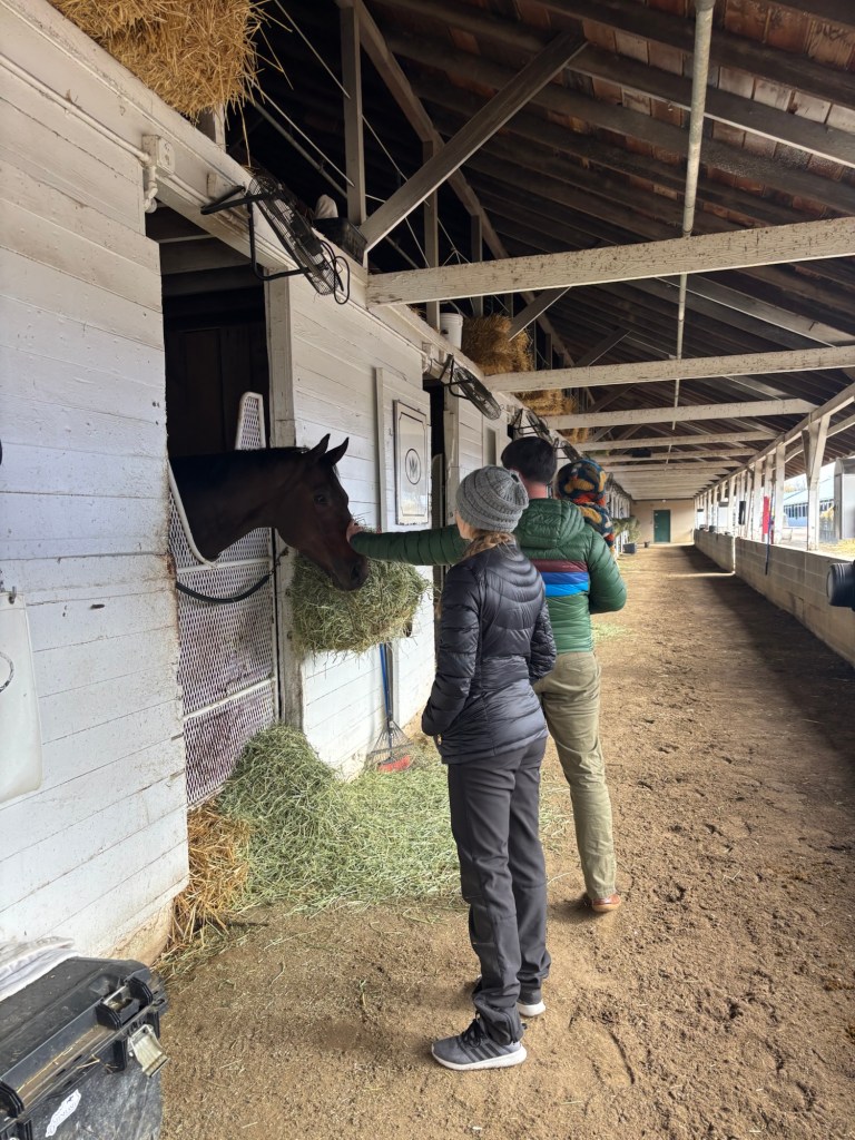 After a heartwarming Thanksgiving, we hit the road for Nashville. Along the way, we were incredibly fortunate to visit Churchill Downs, where we enjoyed a behind-the-scenes tour of the horses, yards, and stables, courtesy of another of Will’s good friends. A jockey and part-time veterinarian, she was busy preparing for the upcoming racing season. Her bravery, strength and kindness serving as an inspiring role model for Tilly and Maggie, showcasing the strength and determination of a woman thriving in a traditionally male-dominated field. We look forward to seeing her again in the spring, to see more horses, foals and to see her race!