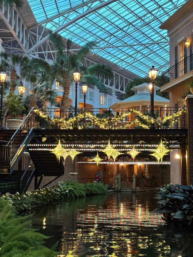 Despite the cold, we discovered one of the best playparks of our entire US trip—a bold claim considering the countless parks we’ve explored over the past year. We also took in the Christmas displays at Opryland, a sprawling indoor resort complete with gardens, conservatories, rivers, and waterfalls. Everything was decked out in glittering lights and festive décor.